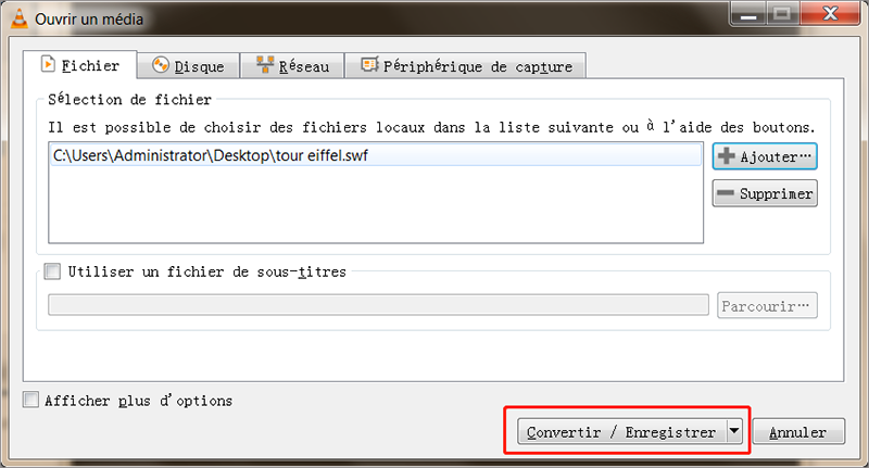 ② Faites glisser le fichier SWF dans le lecteur et cliquez sur « Convertir / Enregistrer » .
