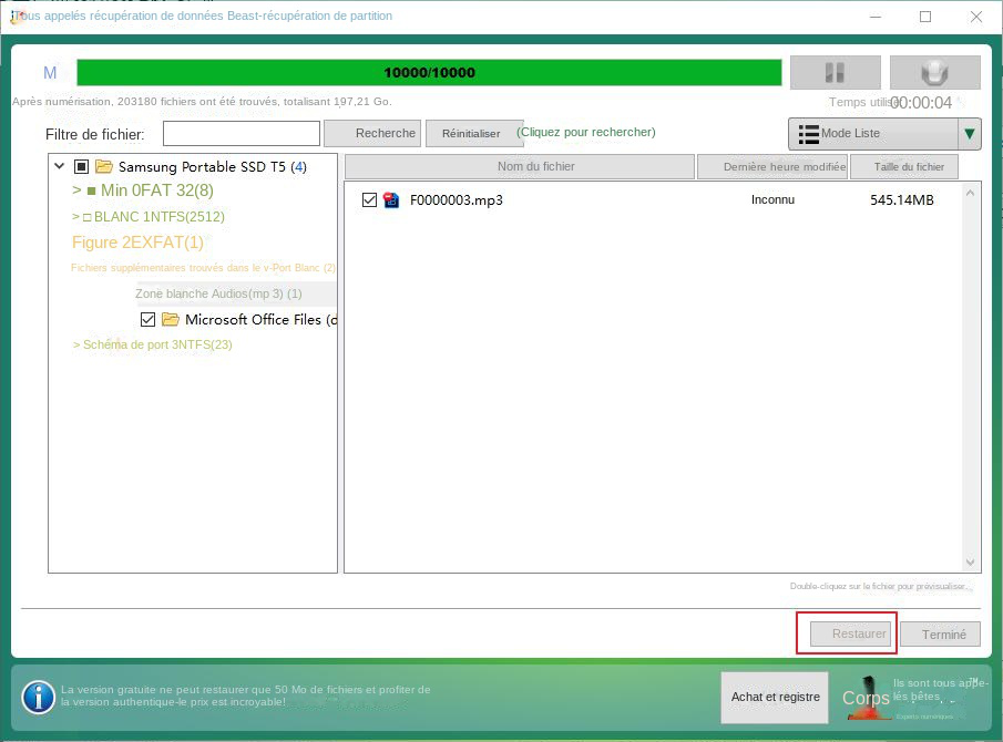 Simple à utiliser Les débutants peuvent récupérer les fichiers tout seul.