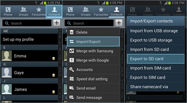 - Appuyez sur Export to SD card. Et puis, tous vos contacts se trouvent la carte SD.